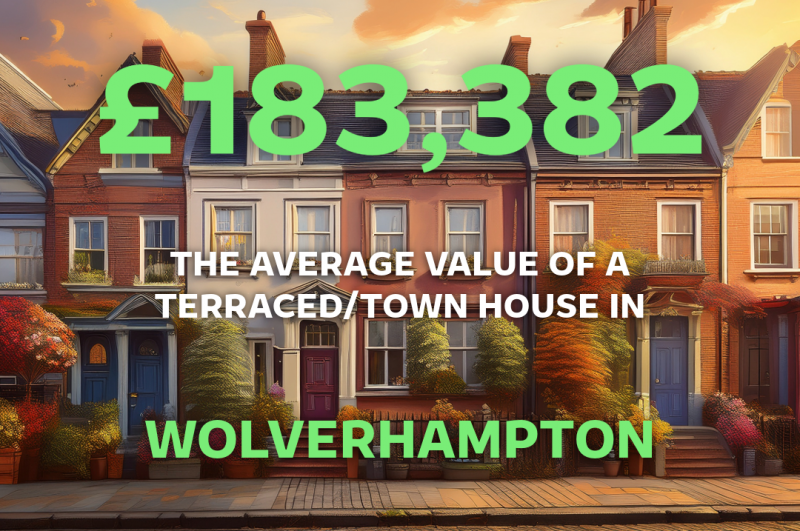 Over the last twelve months Terraced houses in Wolverhampton have changed hands at an average of £183,382. That is the average price paid. By definition, half of sales were below that figure and half were above. This covers everything from older terraces near the centre to newer town houses on modern estates on the outskirts.