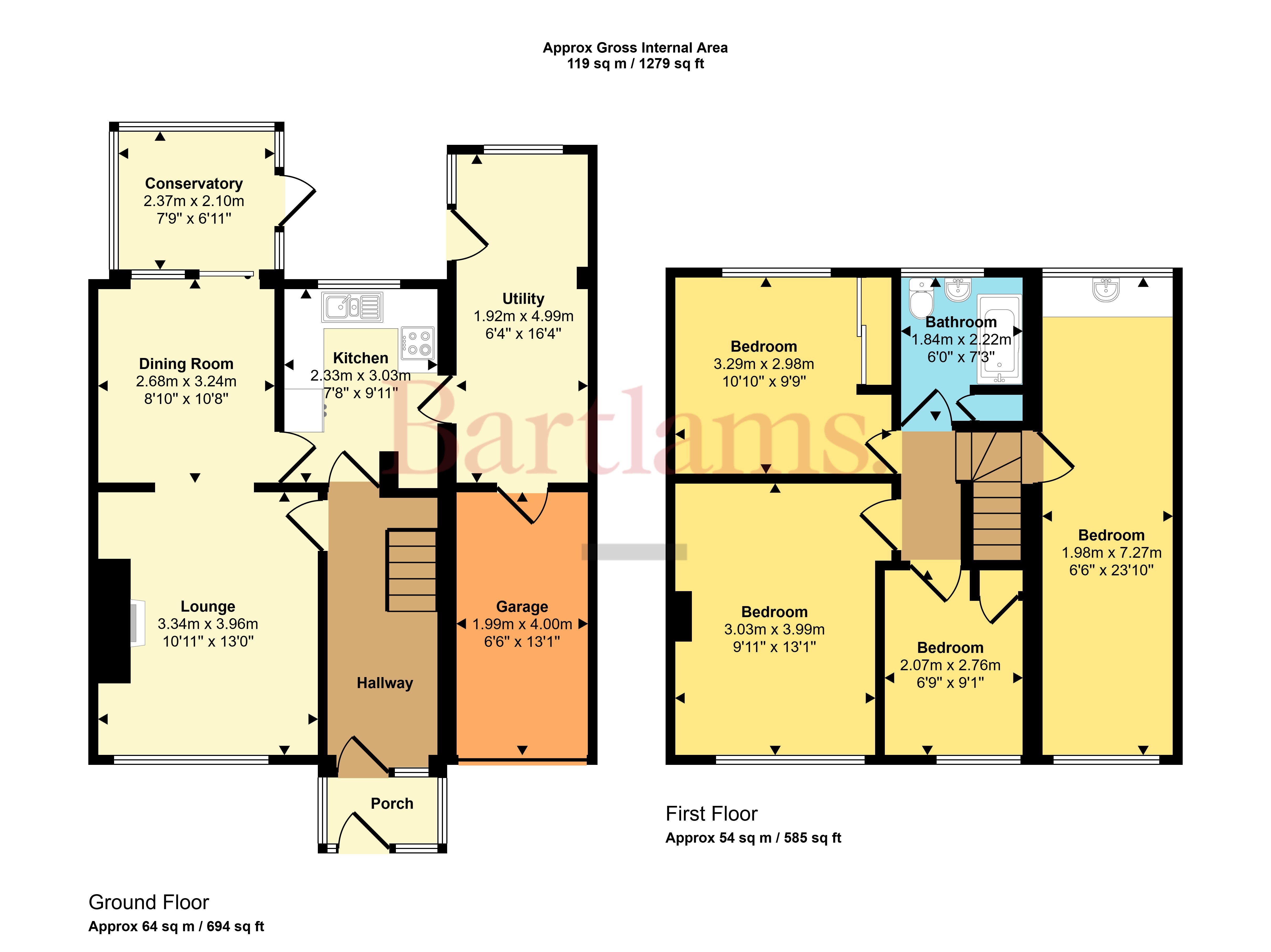 This four-bedroom property, located in the heart of Albrighton, is set back from the road with its own private driveway and a small porch that leads into the entrance hall. The entrance hall provides access to all ground floor rooms as well as the stairs to the first floor. To the front, the double lounge-diner features a large window overlooking the front, a fireplace with surround, and sliding patio doors at the rear, opening into the conservatory. The conservatory is fully glazed, offering delightful views of the garden, with a single door providing direct access outside. The kitchen can be accessed from both the dining area and entrance hall, and benefits from ample cupboard and worktop space, along with a window overlooking the garden. Adjacent to the kitchen is a spacious utility room with dual-aspect windows and a rear door to the garden, as well as internal access to the back of the garage.