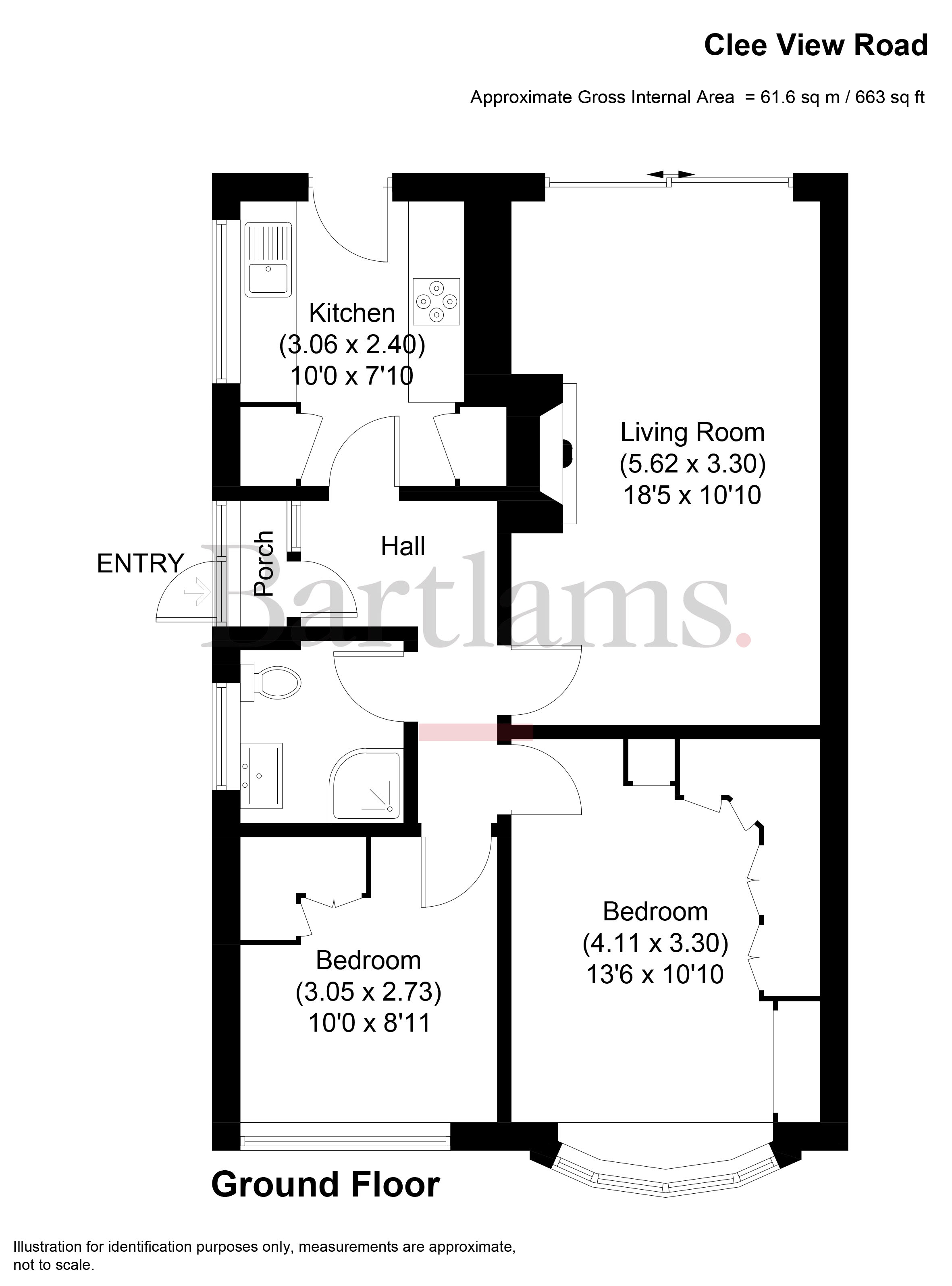 Entering through a side entrance porch into the hallway, this leads to the main living room which features an electric fireplace and sliding doors out to the rear garden, creating a lovely connection to the outside space. To the front of the bungalow are the two bedrooms, both offering fitted storage. Bedroom one is a spacious room with fitted wardrobes and a bow window to the front, while bedroom two is a big second bedroom with plenty of storage space. The shower room is centrally positioned and comprises an enclosed corner shower, WC, wash hand basin, heated towel rail and is fully tiled. To the rear is the kitchen, fitted with wall and base units, a pantry for additional storage, and space for a dishwasher, washing machine, fridge freezer, oven and gas hob. There is also a door providing access to the garden.