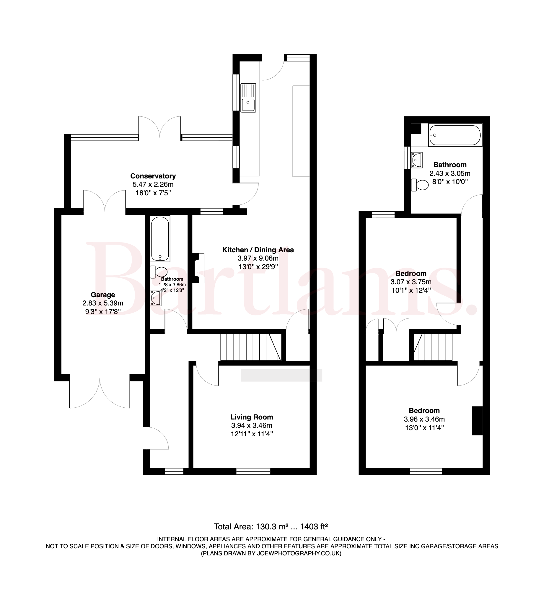 The current accommodation briefly comprises an entrance hall, lounge, a modern ground floor bathroom, and an open-plan kitchen/diner benefiting from underfloor heating, along with a separate conservatory overlooking the garden. To the first floor are two well-proportioned double bedrooms and a generously sized family bathroom. Externally, the property offers off-road parking for multiple vehicles via a driveway to the front, as well as a garage.