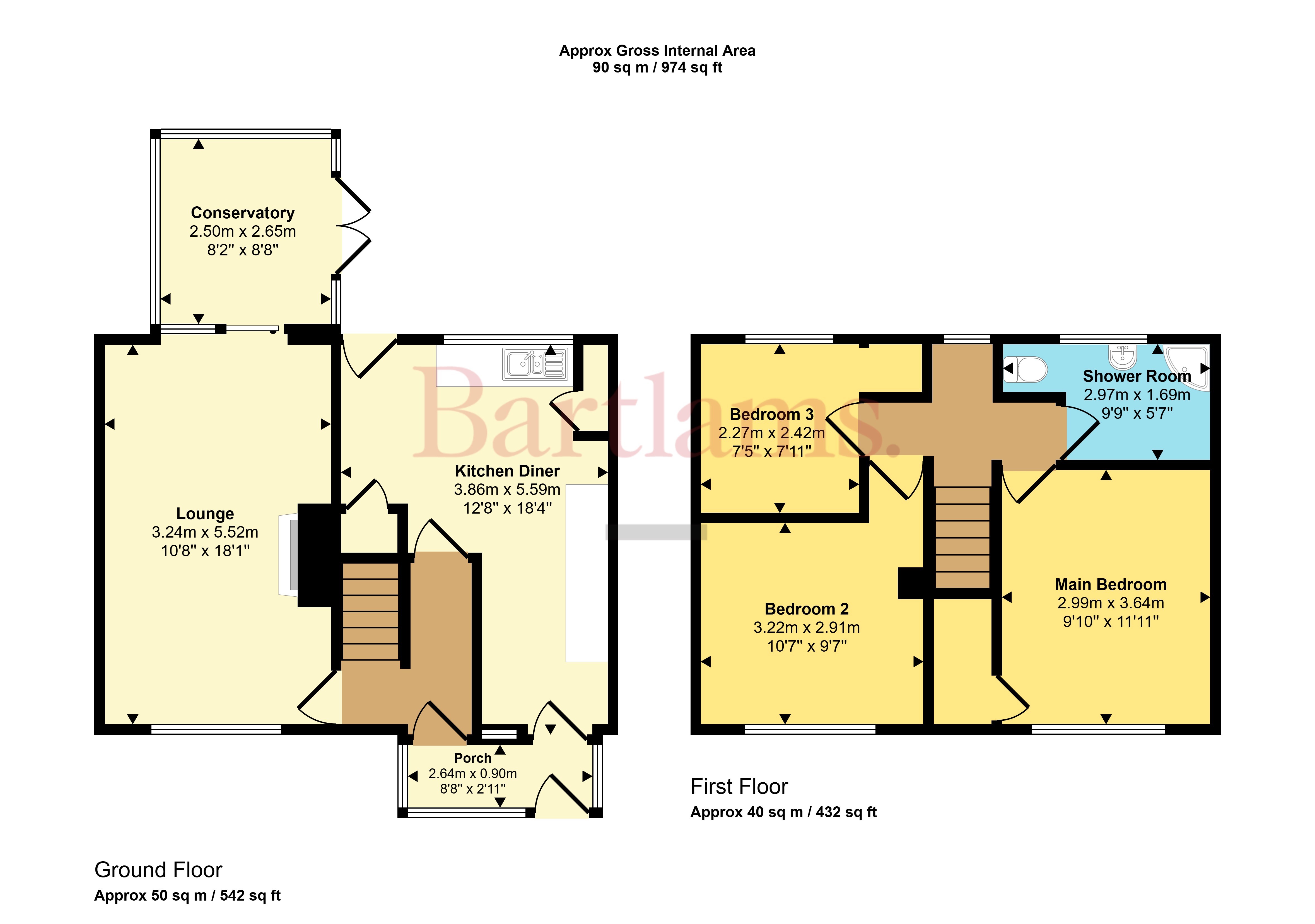 Stepping inside through the porch, you are welcomed into a bright and spacious open-plan kitchen diner, fitted with modern units and extending the full length of the property. A rear window offers pleasant garden views, while a door provides direct access outside. From the hallway, there is access to the staircase leading to the first floor, along with entry into the generous double-length lounge. The lounge benefits from a large front-facing window, a feature fireplace with surround, and sliding patio doors that open into a fully glazed conservatory. The conservatory, with twin patio doors, creates a versatile additional living space overlooking the rear garden. Upstairs, the property features three well-proportioned bedrooms. The principal bedroom includes a useful inset cupboard and enjoys a front-facing aspect, while the second bedroom also looks to the front. The third bedroom, overlooking the garden, presents an ideal option for a child’s room, guest accommodation, or home office. Completing the accommodation is a modern shower room, fitted with WC, wash basin, and shower, finished with a frosted rear window.