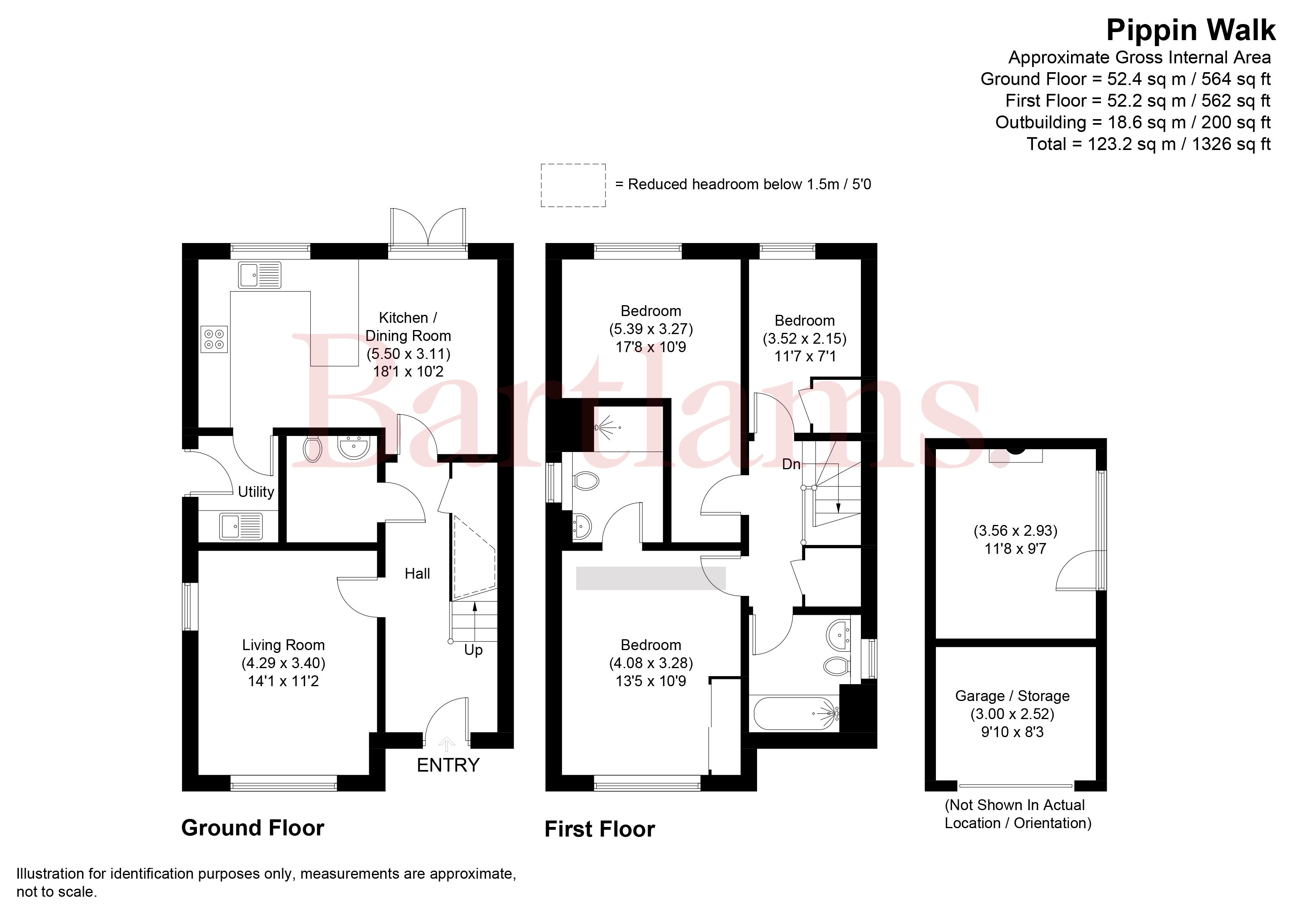Upstairs are three generous bedrooms, with the principal bedroom benefitting from built-in storage and an en-suite shower room fitted with a walk-in shower, WC and wash-hand basin. The second bedroom overlooks the rear garden, while the third bedroom also includes fitted storage. A built-in storage cupboard can also be found on the landing, completing the upstairs accommodation.