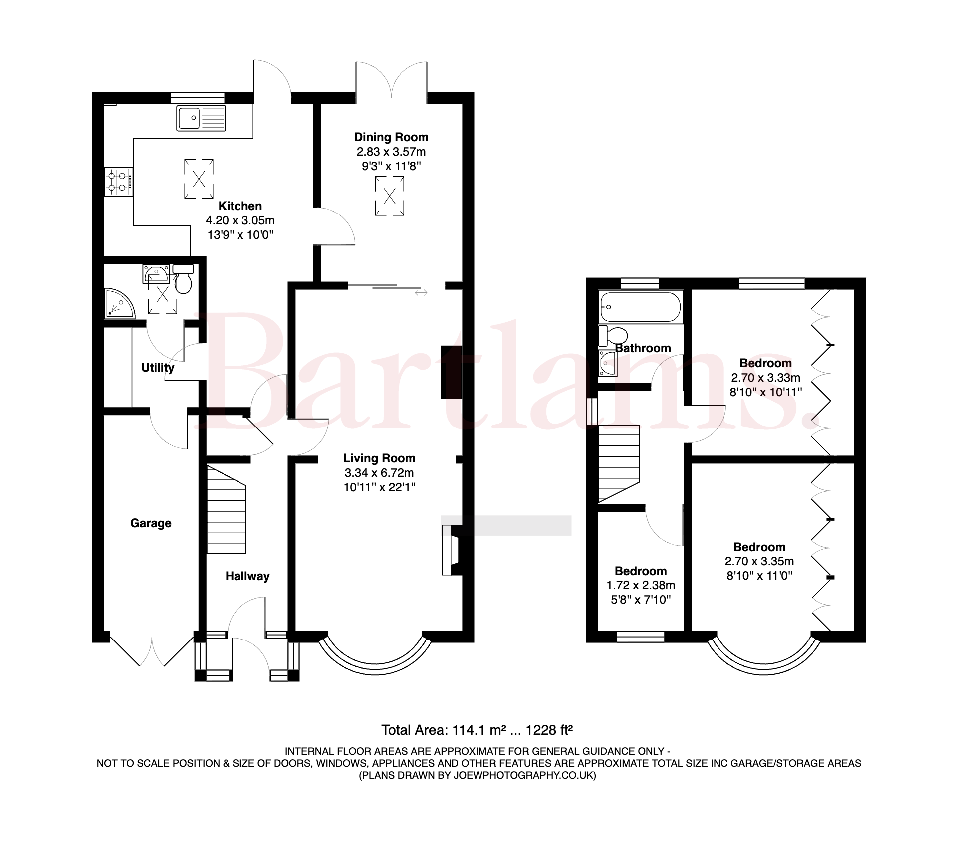 To the first floor, there are three well-proportioned bedrooms, with built-in wardrobes to the first and second bedrooms. The main bedroom benefits from a bay window to the front, while the second bedroom enjoys views over the rear garden. A family bathroom with a bath completes the first-floor accommodation.