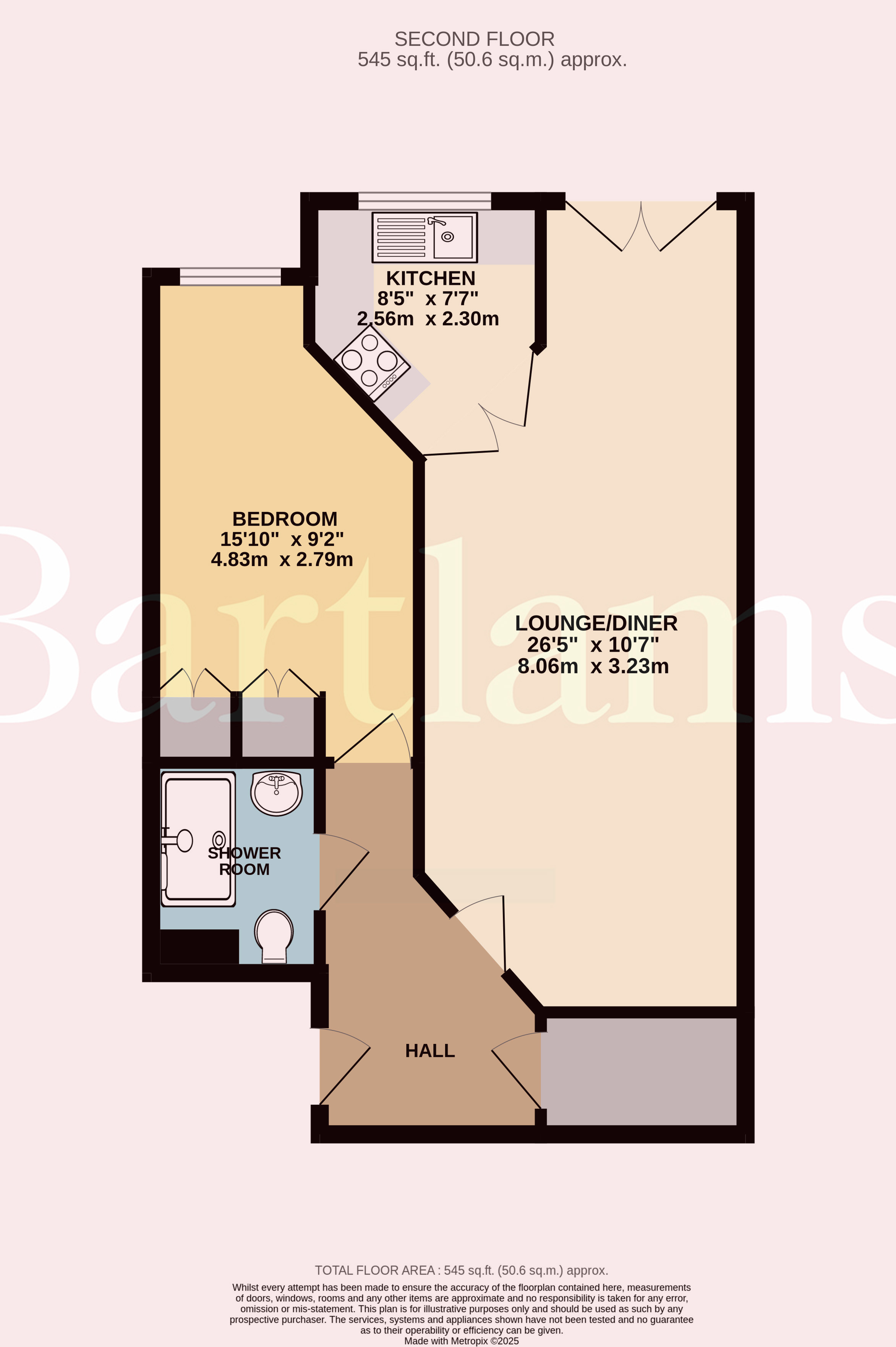 The bedroom enjoys further views across the village and comes complete with fitted wardrobes with mirrored doors. A modern shower room completes the interior, offering a walk-in shower, WC and wash hand basin.